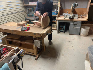 今日の木工作業は丸椅子制作 丸椅子の座部を削る(ざぐり)ので座り心地が良いと思います。完成が楽しみです。 明日は妹子の郷マルシェに出店予定です。明日の天気が気になりますね 晴れますように。