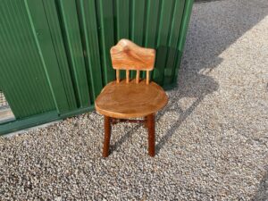 ヒバの木を使った花台orチェアに使ってもらえます。面白い木板を使ってますのでこのままオブジェにもいよいのでは? 自然の木のおもしろさを生かした作品です。 この丸い椅子も可愛いでしょう? 脚はツバキの木で自然木を使っていま […]