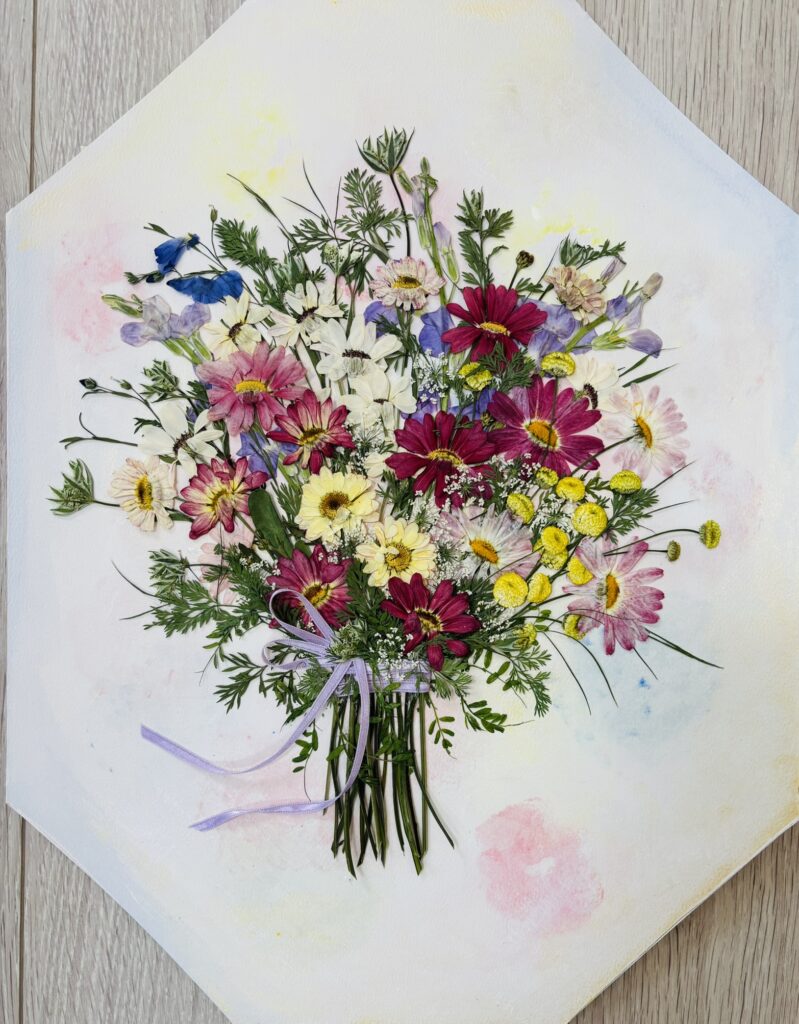 ずっとずっと昔のおし花仲間のこと ある日知らない方からのお電話でした。 ご自分のお母さまのお荷物をかたずけられている中おし花のお道具がたくさんおありだと。 同じ流儀の柳川式押し花の人をお探しだったとのこと それで私のHPよりみつけていただいたとのご連絡いただいたのです。ちなみにお母さまのお名前をお聞きしてびっくり。30年も前のこと同じ学園に通っていた方でした。彼女は私よりも若く感性の豊かな方と記憶していました。本当のこの広い世の中 私に繋がってくださり驚きと感激とで胸がいっぱいになりました
