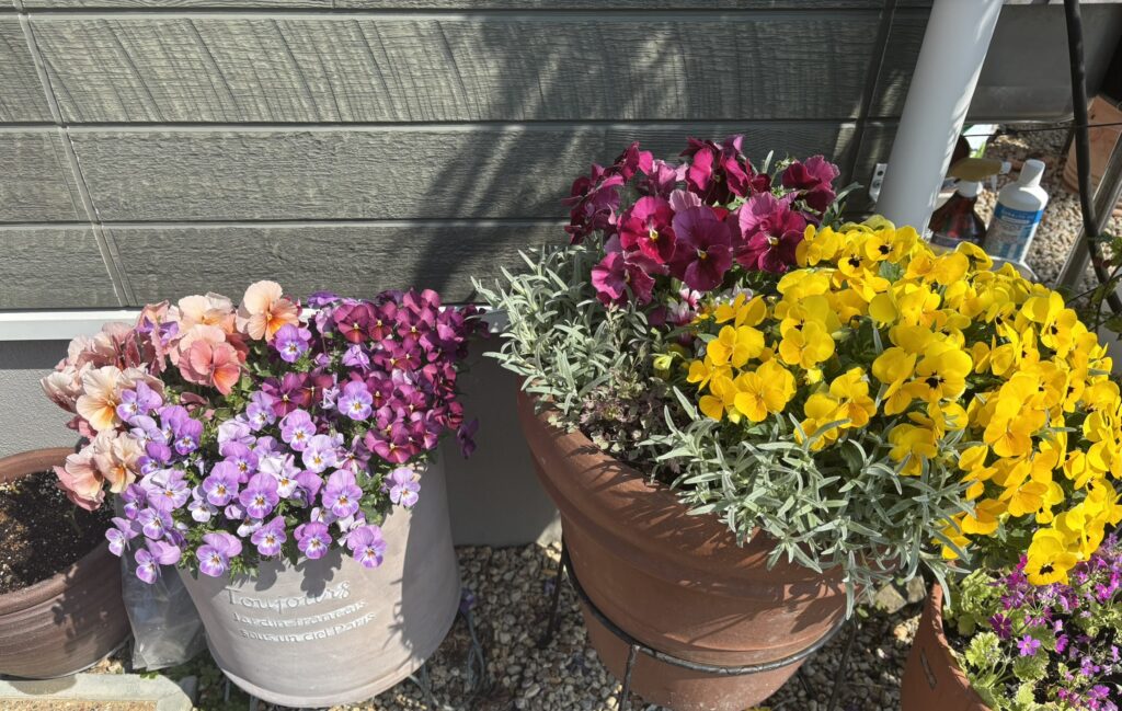 昨年の秋に植えたパンジー アリッサム ムチルコーレ マガレット 毎日4月に入りたくさん咲いてくれています。
