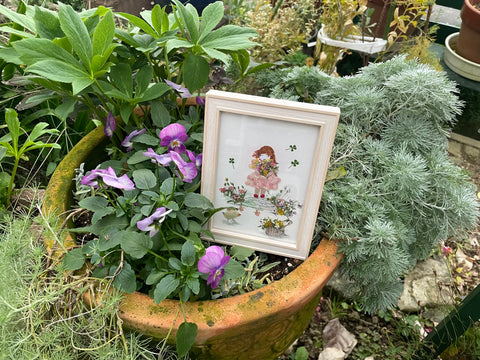押し花作品 お庭にて 2024年11月21日 最終更新日時 : 2025年11月5日 ookinaki 可愛い女の子 ビオラの中にそっと置いてみた まるでお庭に存在しているかのよう お洋服はアナベルのピンクを使用 花束持って楽しそう FacebookXCopy