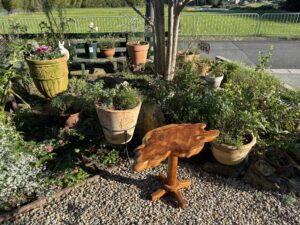 ヒバの木を使った花台orチェアに使ってもらえます。面白い木板を使ってますのでこのままオブジェにもいよいのでは? 自然の木のおもしろさを生かした作品です。 この丸い椅子も可愛いでしょう? 脚はツバキの木で自然木を使っていま […]