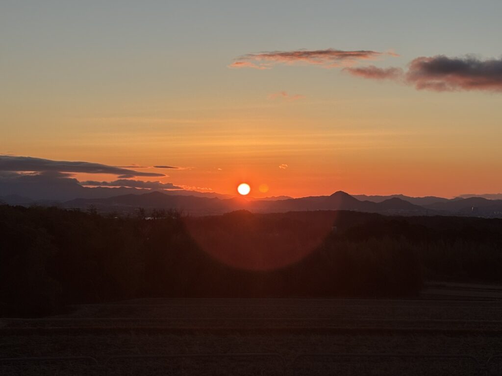 今年の大きな木の朝日も輝いています。 今年も皆様に幸せが訪れますように手をあわせました。