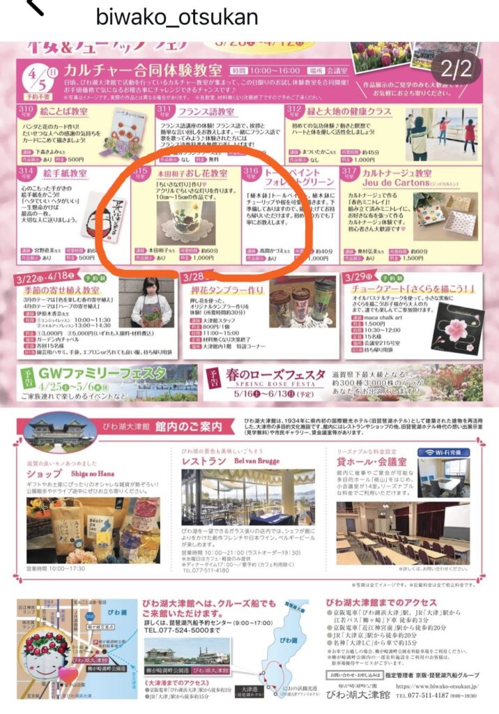 4月5日カルチャー教室合同体験 おし花教室